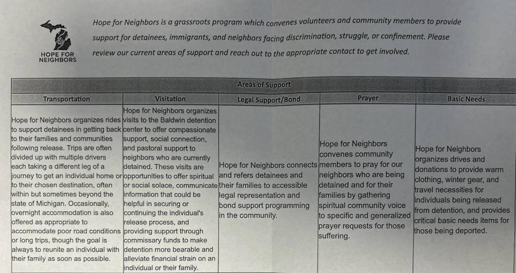 Dale's brand new organization is Hope for Neighbors. You can contact them at HopeforNeighborsMI@gmail.com. Here are their Areas of Support: